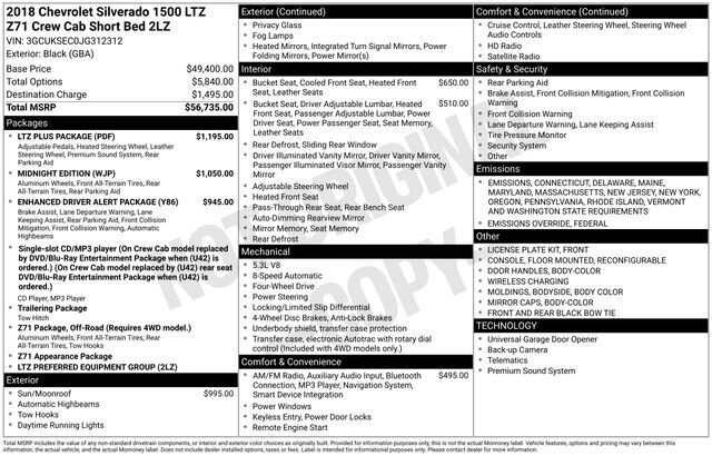 2018 Chevrolet Silverado 1500 LTZ 2LZ w/ Apple Car Play and Navigation