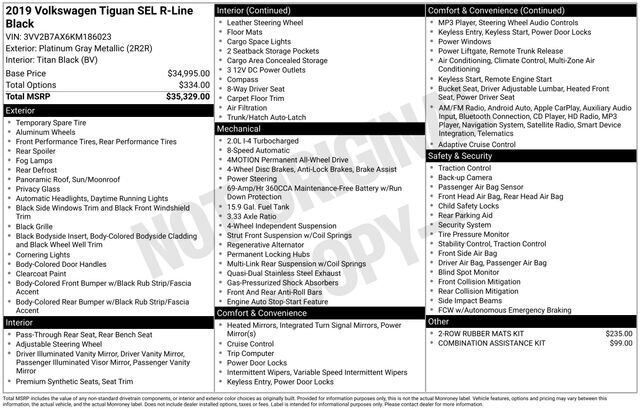 2019 Volkswagen Tiguan 2.0T SEL R-Line 4Motion